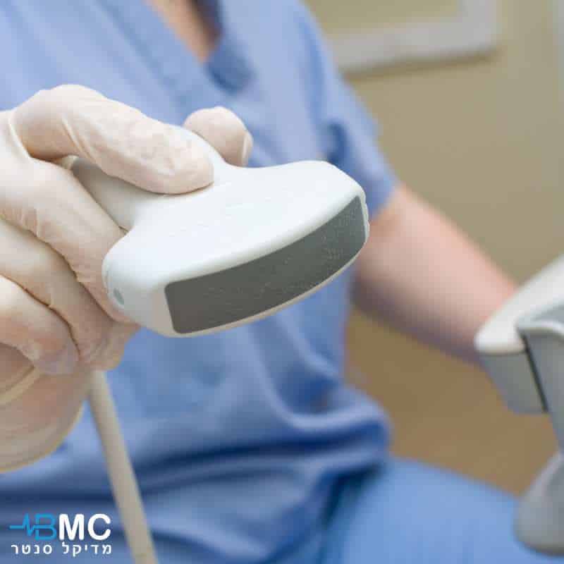 בדיקת אולטרסאונד לאשכים המתבצעת בקריית אונו, עם מכשור רפואי מתקדם לטיפול ואבחון מדויק.